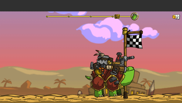 2、举行战甲陆龟驼着巨型炮台,去消灭邪恶势力;