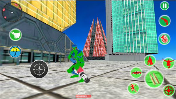 2、角色扮演和一些疯狂的武器,玩惊人的青蛙工作,在城市维护和平。