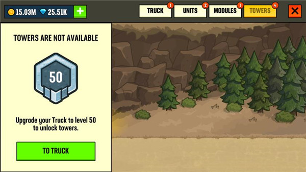 其次,玩家可通过“TRUCK”升级卡车,提升英雄等级,增加卡车位置的数量。