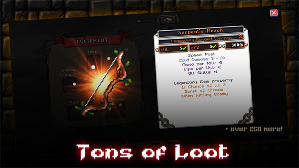 3、获取丰厚的奖励提升你的等级,获取各种武器和装备,挑战强大的地牢boss。