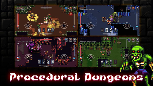 1、经典复古的像素风格设计,多元化随机的丰富玩法内容。2、与超过50种怪物进行战斗,体验RPG的乐趣,随时随地都能玩耍。