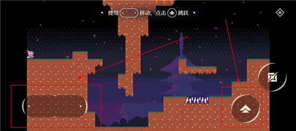 3、左边的这个是方向键,控制我们上下左右移动,右边的这个可以让我们跳跃