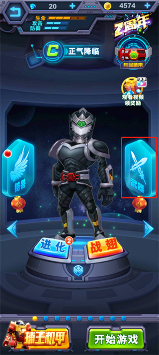 1、双击打开铠甲勇士英雄归来游戏即可进入英雄进化界面,点击下方的进化;
