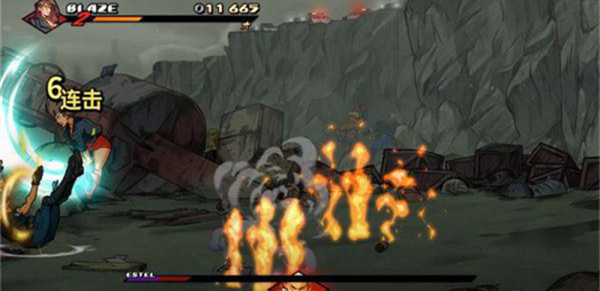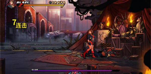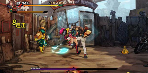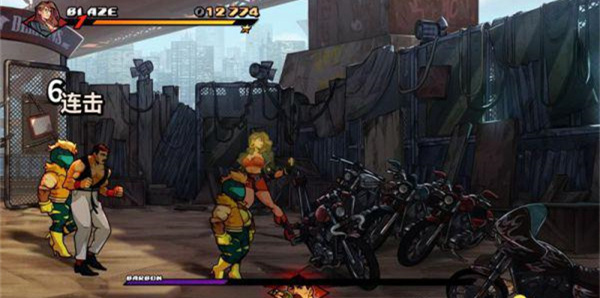 场景右边的摩托车是可以打爆的,会掉食物、星星,你还可以躲进摩托群里挡住BOSS踢腿。