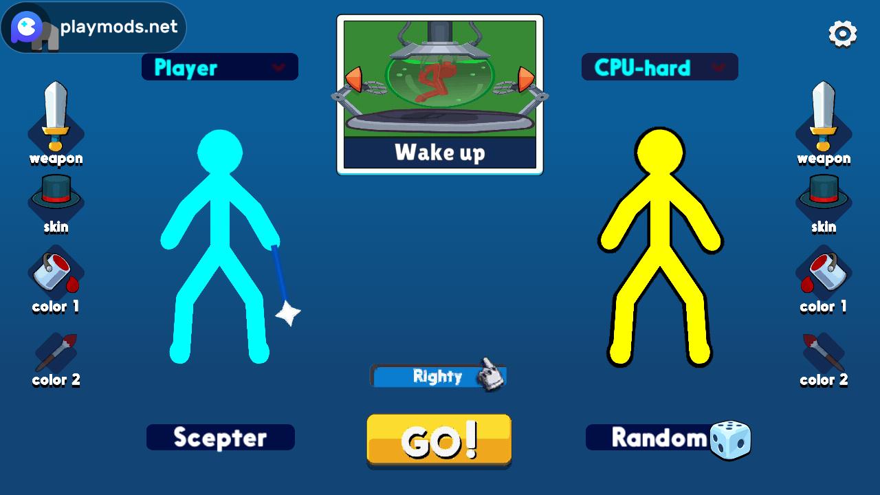 有四种主要的游戏模式,1玩家,2玩家,3玩家和4玩家,您可以同时控制两个火柴人或自己对抗CPU,有三种类型的 CPU 难度:简单、正常和困难(最近减弱)。