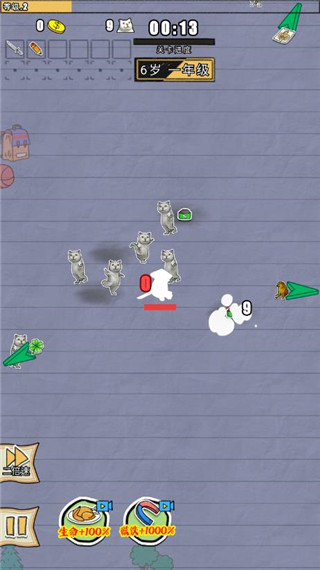 3、不断提升自己的攻击威力,敌人的攻击一波比一波凶狠。