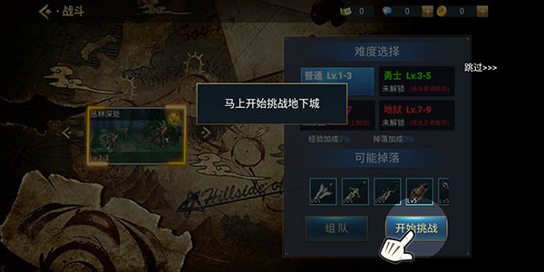 5、了解完成后,点击右下角按钮,马上开始挑战地下城。