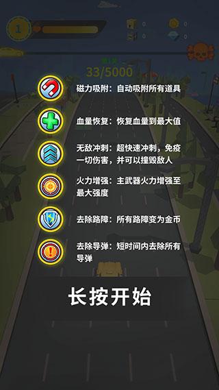 2、这时候会显示游戏中的各类道具介绍,长按屏幕即可开始游玩。