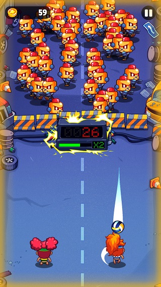 6、可能有的小伙伴迷惑了:发球?不是打僵尸的吗?没错,是打僵尸,但是我们的英雄使用网球作为武器的哦。玩法就是像打网球一样,在我们第一次点击了屏幕之后,咱们的英雄就会向僵尸打出去一个网球,然后直接一击制敌,消灭一个僵尸。不过,在消灭了一个僵尸之后,网球就会弹回来了,这是我们就需要根据网球是弹到左边去还是弹到右边去,来决定点击左边屏幕还是右边屏幕,然咱们的英雄做出推挡动作,把球又给打过去,然后在再一次消灭了一个僵尸之后球又弹回来,然后咱们又继续点击屏幕把球给打过去,不断循环。