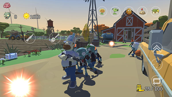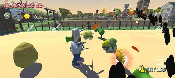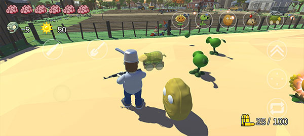 相信大家一定还记得前不久的热门游戏戴夫大战僵尸吧,游戏采用强大的设计角度和戴夫和僵尸作战的新奇题材,非常吸引人,很多玩家纷纷表示没有玩过瘾,那就不妨来试试植物大战僵尸戴夫有枪手机版吧,简称为PVZ_TPS,同样是由大神玩家自制的一款以戴夫打僵尸为主题的动作射击游戏,但不同的时,作者火山哥哥将游戏设计为3d版本,玩法操作也很简单,玩家在这里需要扮演农场主戴夫,通过按钮控制自由移动,利用手中的武器攻击四面八方袭来的僵尸潮们,开局有1000阳光,除了可以体验刺激的射击枪战,玩家还可以找一个位置,猥琐发育,种植豌豆射手、土豆地雷、坚果以及玉米加农炮等经典植物来抵御僵尸,收集掉落的武器弹药,打败一波波的僵尸潮,不断解锁更加新奇刺激的战斗体验,非常好玩有趣!