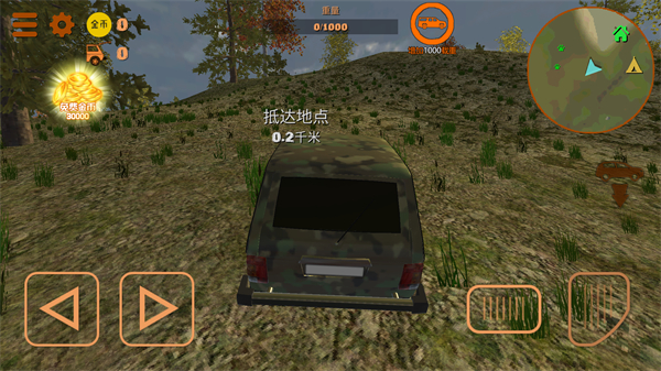 2、你可以选择驾驶自己的车辆去狩猎,左侧控制车辆方向,右侧则是刹车和油门按钮。