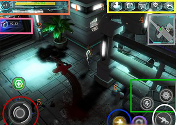 在屏幕左下角有一个虚拟摇杆,玩家利用该虚拟摇杆进行移动。
