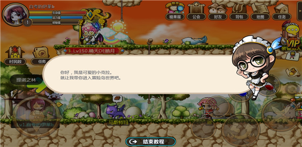 5、在完成前情提要后,会有可爱的小克拉带你进入冒险岛世界;