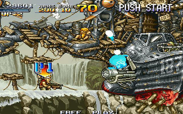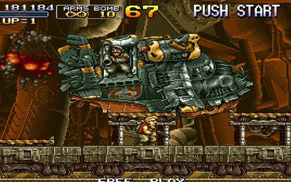 1996年的初代合金弹头令人出乎意料的并不是由SNK所制作,而是一家名不见经传的冷门公司Nazca的作品。使用了MVS强大机能的合金弹头(以下简称MS1)在一出场的时候就已经近乎完美。4方向跳跃射击、主枪火力品种全面、大威力抛物线炸弹再加上近身速度极快的小刀,一个全能型的战斗人物就此诞生了。而每关必定出场的乘物[Metal Slug]更是具备了明星所需要的一切要素,凡是见过这款游戏的人无不对这部Q版小坦克着迷--废话,有谁见过会跳着前进还会趴下的坦克,它简直被注入了生命。小编精选