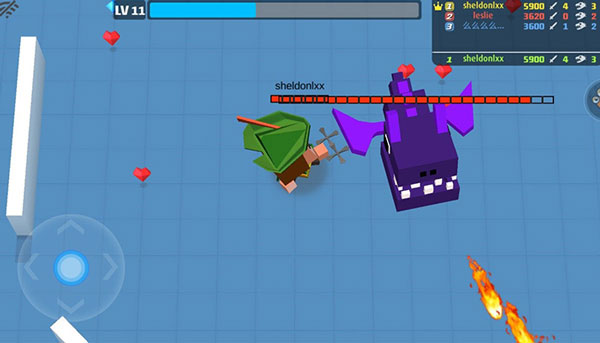 游戏的主要内容虽然是玩家间互殴,但怎么打,怎么打得尽兴也很有讲究。游戏有限定时间的限时赛,一顿乱打的在线大乱斗,还有高端对局的5V5,供不同类型的玩家选择。在大乱斗中游戏里还会出现喷火的火龙,犹如PVE中的大BOSS,打掉后会爆出一地的钻石以及随机技能,极其刺激。