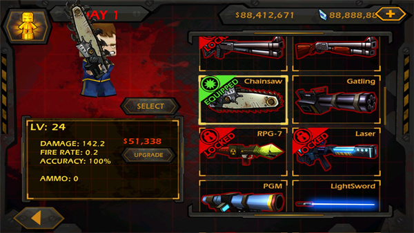 11、光剑:我可以说这是里面最好用的武器,它满星后威力是578,电锯是206,有人会说没多大差别,那么请看好了,电锯是0.2s一次,光剑是0.1s一次!什么概念呢?就是光剑砍两次相当电锯砍一次,578+578=1156!看看,这就是差别,这么实用的家伙,谁不想要?价格偏贵:550000。