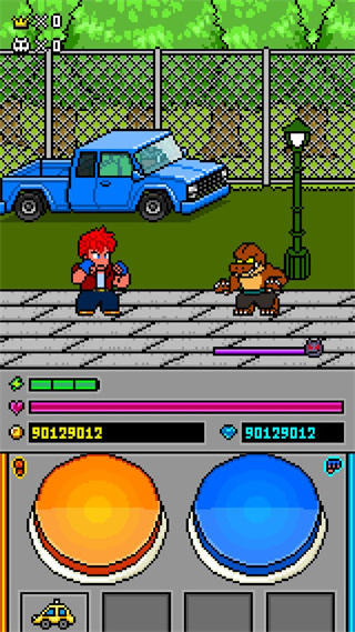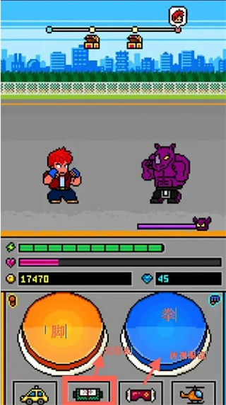 怪兽眼镜放蓝光,你在它贴近你的一瞬间点击拳的蓝色按钮,完美防御,不受伤害,并且有反击动作。