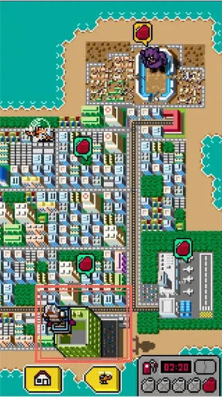 一般大家有疑虑的是最后一关,直接点击的话猪BOSS会把你吹飞,这个时候你就要武装上机甲才能战斗,机甲在地图上的绿房子中