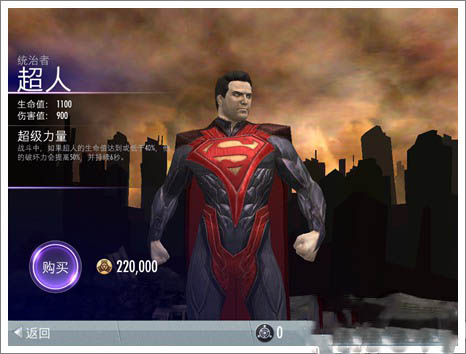 技能:超级力量 战斗中,如果超人的生命值达到或低于40%,他的破坏力会提高50%,并持续6秒。