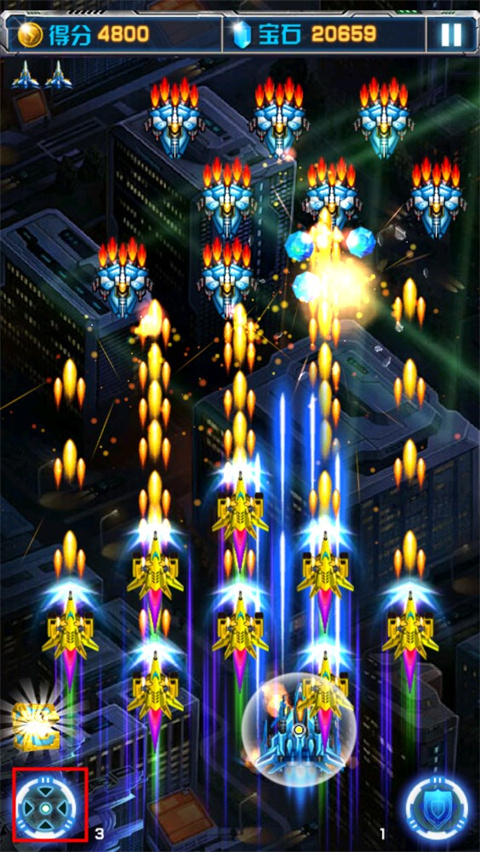 4、战机变身后,火力超强秒杀一切敌人,给你一骑当千的感觉