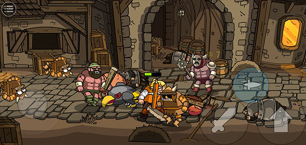 3、这款游戏的操作非常简单,左边是移动,右边是跳跃、攻击、技能,消灭所有敌人就可闯关成功;