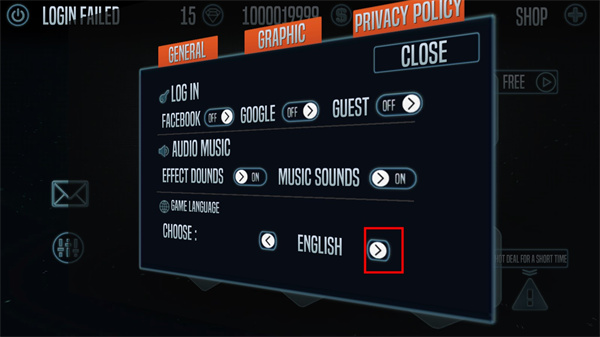 1、首先我们进入黑手党战争,游戏默认是英文界面,可以设置成中文,我们先点击左上角设置;