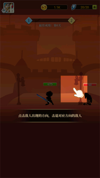 2、游戏中,玩家需要点击敌人的方向来进行攻击;