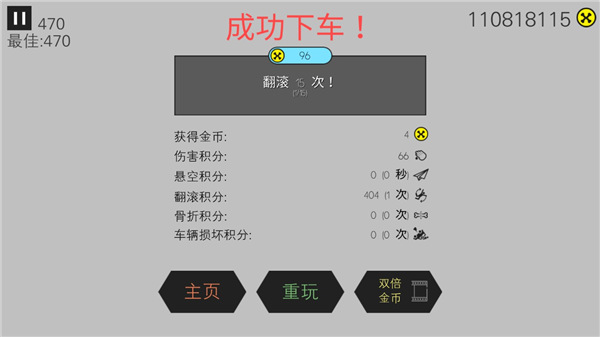 3、估计有的人一开始不知道什么意思,其实就是能够在规定的次数内能够让小人骨折多少次,骨折的次数越多你的分数也就越高,获得的金币越来越多。