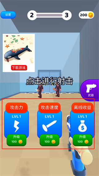 2、游戏中玩家需要通过点击屏幕来进行射击;