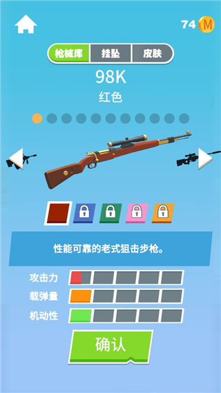 1、游戏中每次胜利后你都会拿到不少的金币,用它来置入全新的狙击枪吧