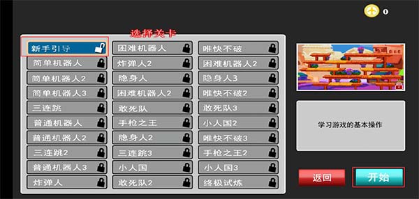 2、选择第一个关卡“新手引导”,点击“开始”;