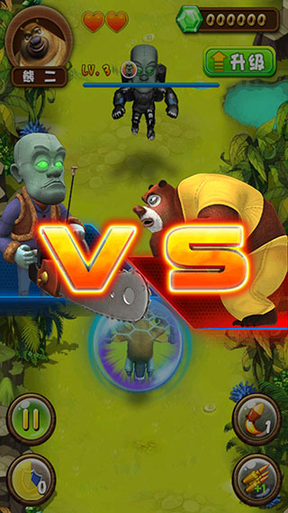 7、首创BOSS战,游戏中熊大不是只有被打的命,拿起武器反击光头强吧。