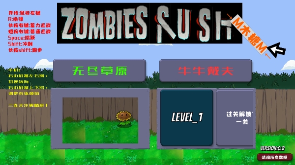 1、打开疯狂的戴夫手机版,左侧可以看到玩法相关介绍,选择无尽草原或者是牛牛戴夫模式,开始第一关卡。