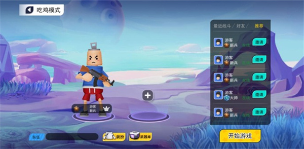1、首先我们进入拉罐大作战官方正版游戏中,小编选择的是吃鸡模式,游戏中还有其他的游戏模式,开始匹配;