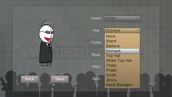 2、选择右侧的“head”“hat”“glass”“shirt”等外观选项,自定义发型、眼镜、肤色以及衣服,完成后可以点击“Save”保存。