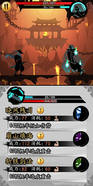 3、战斗中施展不同招式需要消耗不同的蓝条值。
