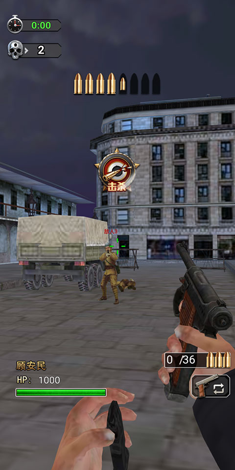 3、有了趁手的武器,就可以进入战斗了,拖动准星瞄准敌人即可进行射击。