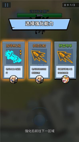 5、技能优先选择顺序:加特林1,加特林2,老兵的范围技能,狙击手双击,狙击手攻击距离,攻击力,攻速,增加治疗量,双人治疗,随意搭配。