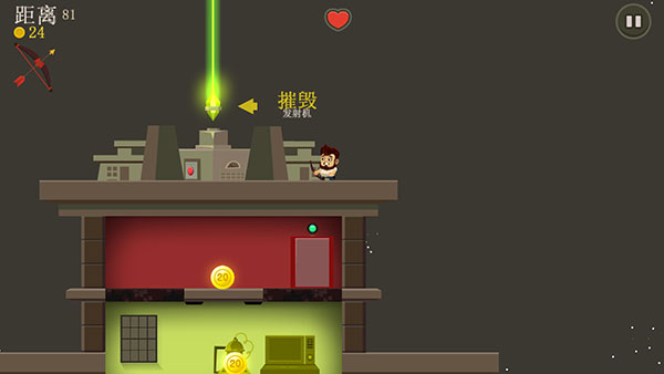 7、只要摧毁发射机即可过关,但在此之前,如果角色的生命值归零也是会导致游戏失败的。