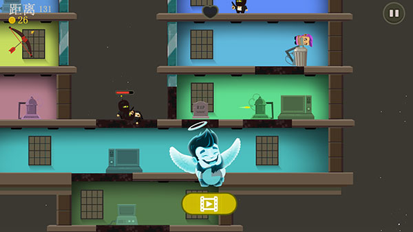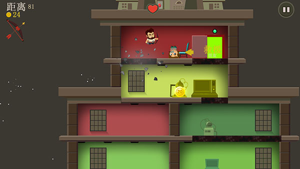 游戏让大家体验到了只需一手操控也能感受猛烈撞击的快感,刚开始贴心的新手教程也足矣让玩家一目了然,只需上下滑动屏幕,便可操控这位大胡子上下跳跃来回穿梭撞击在各个楼层之间,并在躲避敌人的攻击同时攻击敌方解救人类。