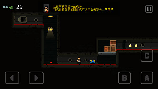 6、我们可以在蓝色的箱子里获得头盔,头盔可以使我们获得额外的保护,当我们戴着头盛的时候你可以用头去顶头上的箱子。