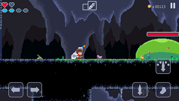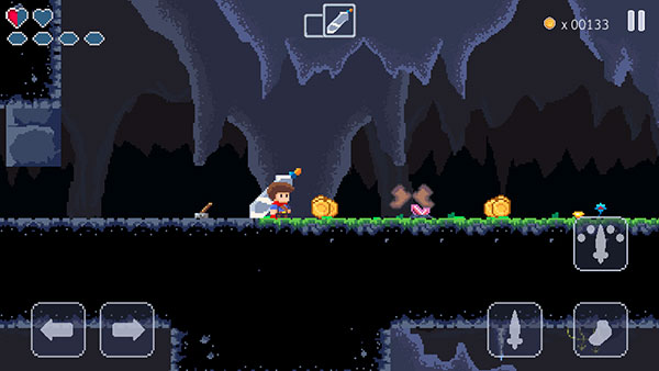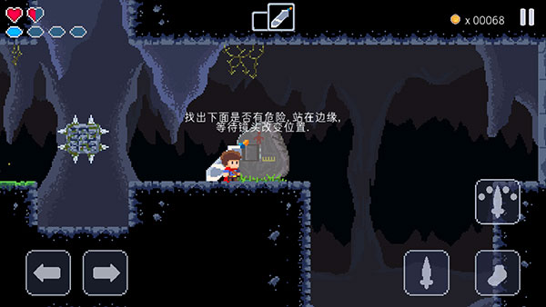 1、进入杰克任务剑的传说游戏之后,我们可以看到左侧按钮控制角色移动,右侧鞋子按钮控制跳跃。
