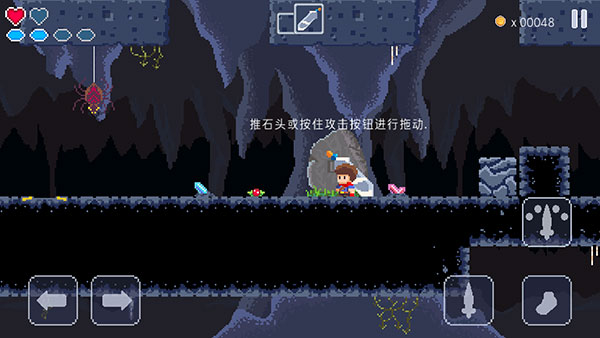 5、想要移动石头,可以通过推石头或按住攻击按钮进行拖动。