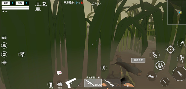 玩家可以躲在树后面进行偷袭,也有相应动作,还可以趴在植物中,因为模式里植物很多,所以玩家们可以当老六,是不是很有趣