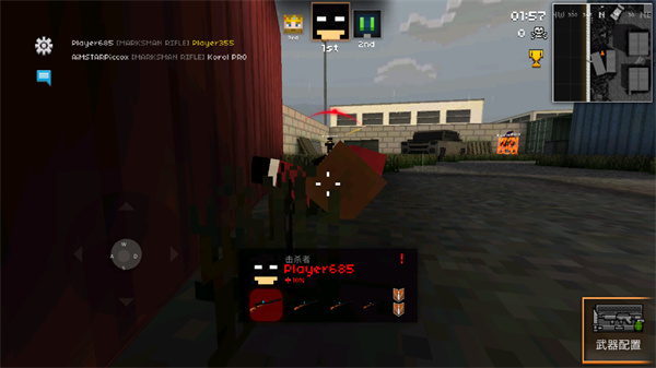 像素突击3d手游中玩家可以选择不同的游戏模式进行战斗,例如团队死亡竞赛模式,玩家需要与自己的队友合作,击败对手团队取得胜利,还有单人生存模式,玩家将独自面对敌人,在限定时间内尽可能多地消灭敌人以获取高分。像素突击3d手游内还提供了丰富的武器选择,包括手枪、步枪、冲锋枪和狙击枪等。每种武器都有其特点和用途,在战斗中玩家需要选择适合的武器来对抗敌人。