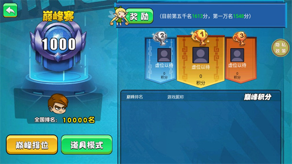 吃鸡大逃亡拥有排位模式和巅峰模式,其中排位模式是全开放的,玩家可以随意玩;而巅峰模式又分为巅峰排位和道具模式,不过想要进去巅峰模式,前提是需要钻石段位才可以哦!