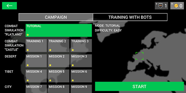 4、点击右下角的SINGLEPLAYER单人模式后,再选择TUTORIAL选项,即可开启教程,熟悉游戏的具体操作。