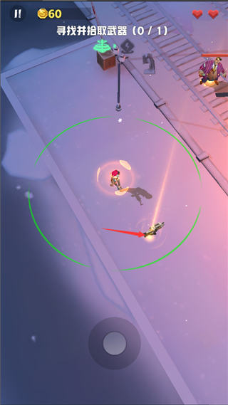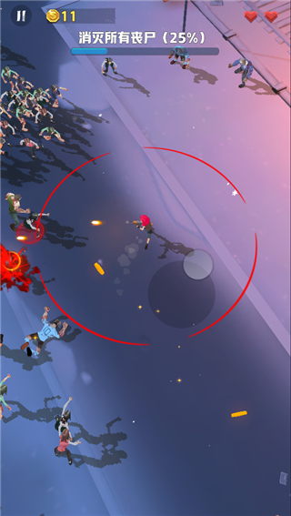 僵尸收割者玩法简单,单指即可操作,通过点击屏幕移动虚拟摇杆控制角色走位,躲避僵尸即可。