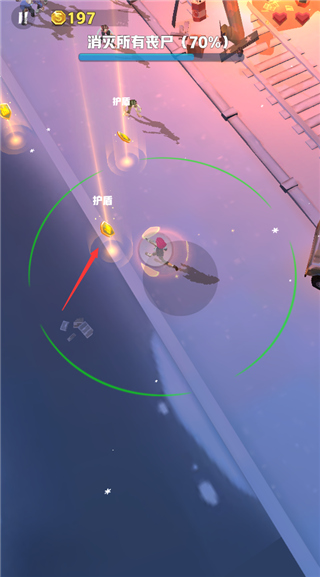 7、根据上方的提示全部击败僵尸即可通关,通关可以解锁更多的武器。