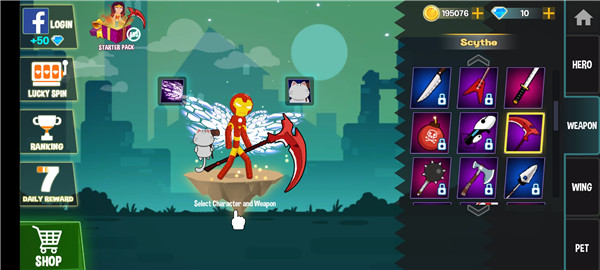 2、选择你的火柴人角色,钢铁侠、鸣人、路飞等等应有尽有;